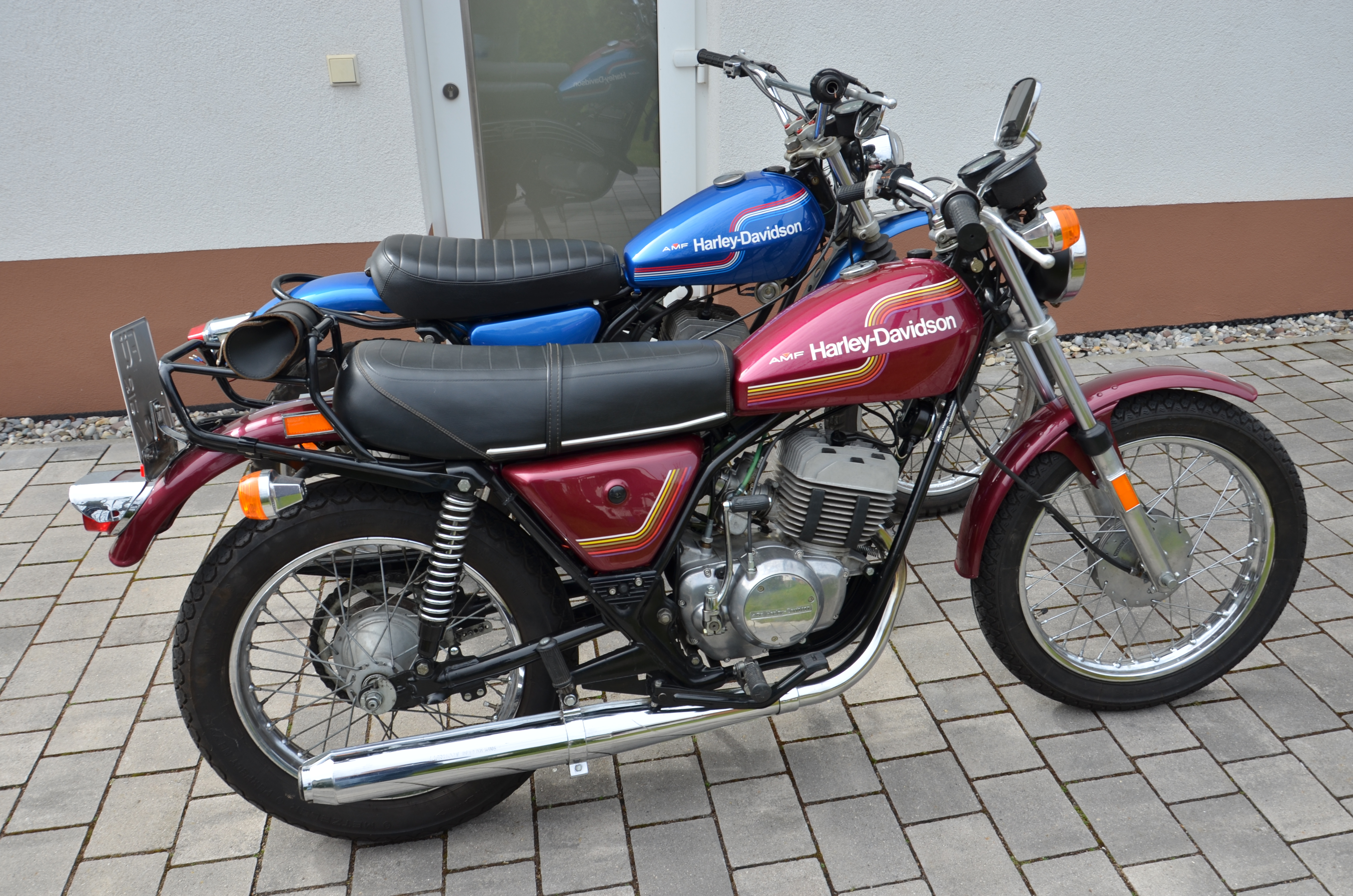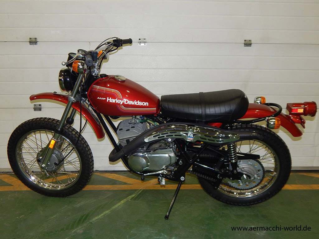 | The SX-175 was introduced in 1973 as a 1974 model year. At the same time the factory in Varese stopped producing the single cylinder 4-stroke bikes and from now on you could only get 2-stroke single cylinder bikes from AMF Harley-Davidson.